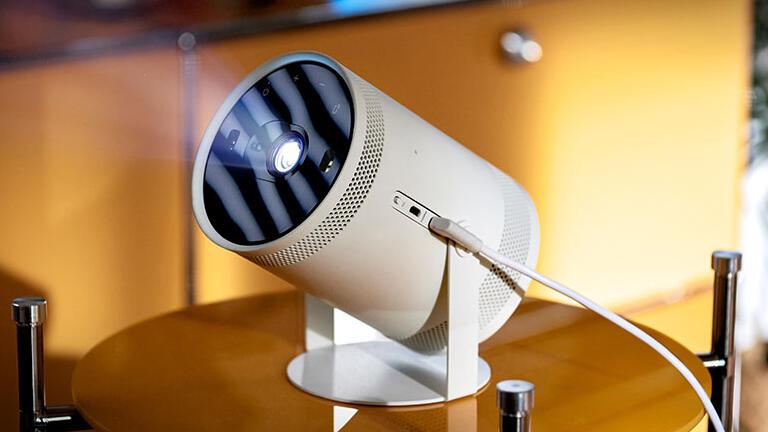 Released in late 2023, the Samsung Freestyle 2 is a compact, clever projector that lets you stream Netflix, Disney+, Prime Video, or YouTube almost anywhere - no extra devices required.It runs Samsung’s full Smart TV (Tizen) platform, giving you the same app experience you’d find on one of the company’s televisions. Setup is almost instant: place it on a shelf or coffee table, switch it on, and it automatically focuses and levels the picture for you.In a dimly lit room the 1080p image looks sharp and vibrant, easily filling screens up to around 100 inches. Audio comes from a 5 W 360-degree speaker that sounds clearer and louder than expected for its size, and you can connect Bluetooth headphones or a speaker for larger sound.With Samsung’s optional battery base, the projector runs for roughly 2 to 3 hours per charge without needing mains power. At around 230 ANSI lumens, brightness isn’t strong enough for daylight viewing, but in the evening or a darkened room it delivers a genuinely immersive, portable cinema feel - quick, simple, and cable-free.